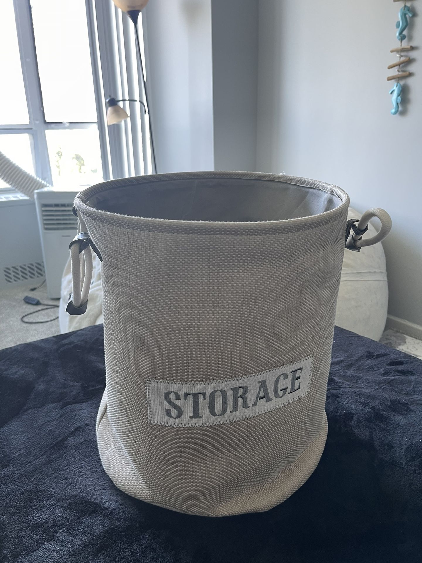 Sea Team Jute and Canvas Storage Basket with Cotton Rope Handles and Drawstring Closure, Collapsible, Lightweight Laundry Hamper for Home - 46.8L Capa