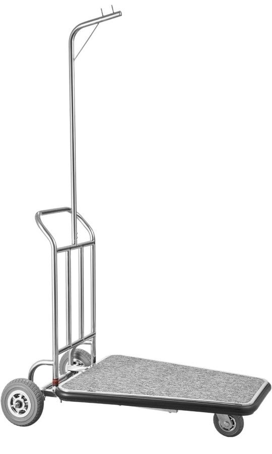 VEVOR Luggage Cart, 600 LBS Load Capacity, 3 Wheel Stainless Steel Bellman Cart, Valet Kart with Grey Carpeted Deck and Rubber Wheels, Ideal for Convention Centers, Hotels, Rental Properties, Silver
