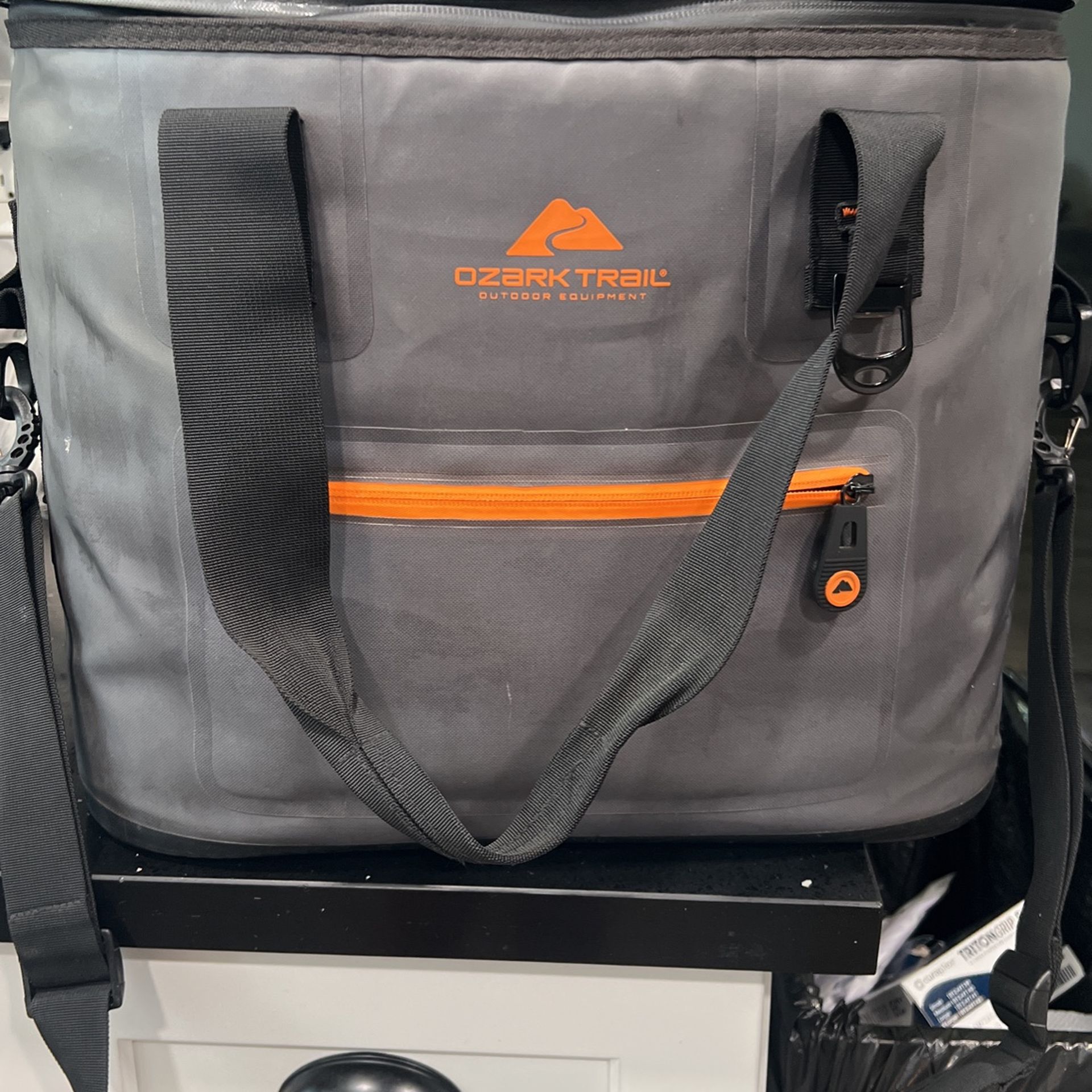 Preloved Ozark Cooler Bag Keep cold for hours! Bottle opener on bag Long strap and handle straps Only flaw is in pic, strap slightly untreaded on one side (short strap) , but still has lots of life
