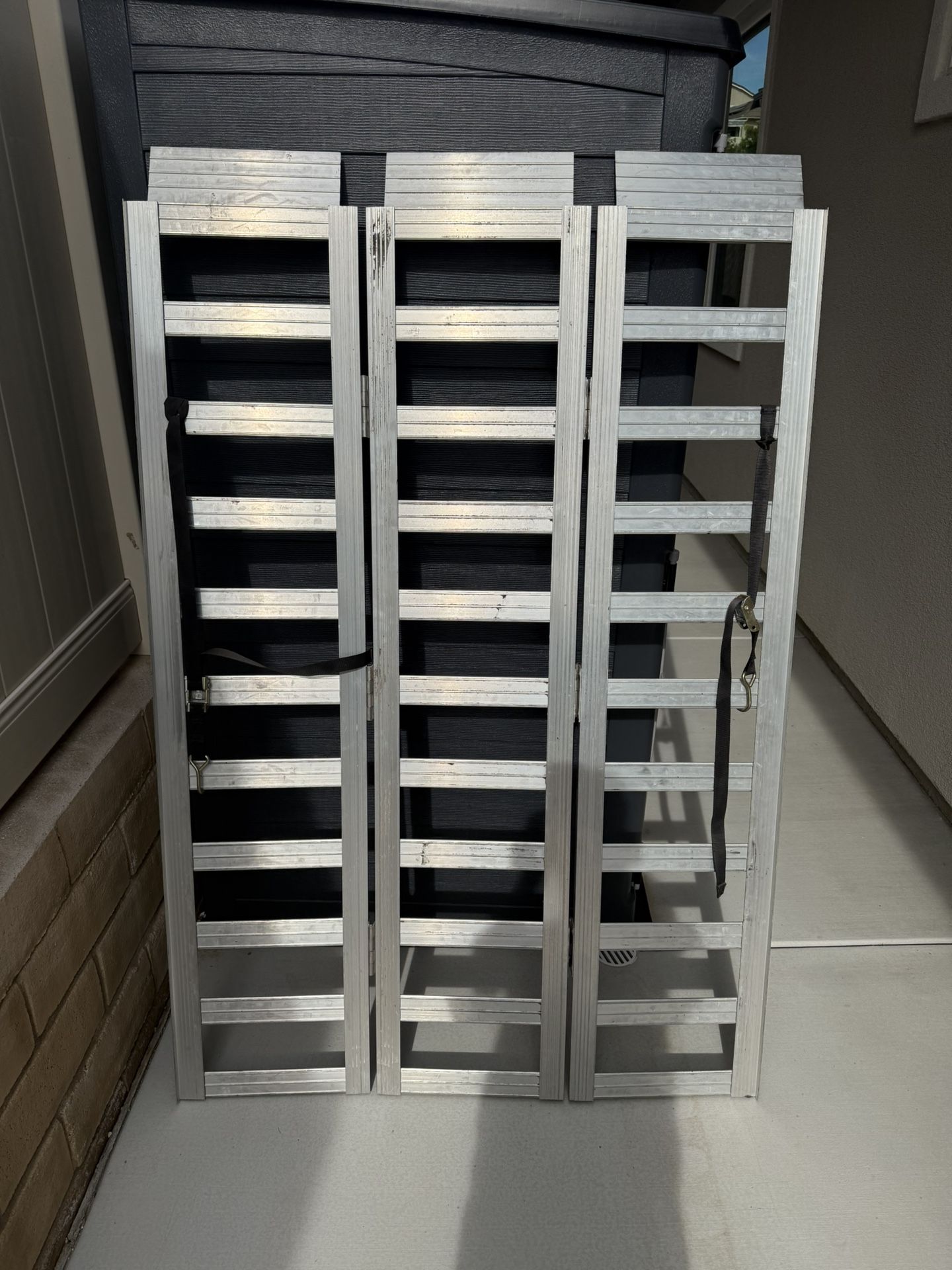 Folding Quad atv motorcycle ramp 45x69 when opened full folds 3 to one ramp side 1500lb pay load per sticker comes with the original tie downs 150xcw te 300 te 125 te250 te 150 te300i te 125i te250i te 150i 300i 125i 250i 150i te tc xcw xc w dr 650 dr400 drz400 400 650 dualsport dual sport California plate dr250 CT 70 Ct70 ct70h 70h Mini z50 z50r z 50 trail 70 250r 500r atc atc 70 xr 75 xr 75 mr 50 ez 90 ct90 ct 110 way bw80 BW bw200 200 big wheel tc65 65 tc85 85 tc50 xr 400 xr400r xr600 xr600r klx300 klx 300 xr 250 xr250r klx1401 klx140g 140l 140g big wheel 80 KDX kdx 200 kdx250 Suzuki quad sport quadsport Quadracer Quad racers Itz250 Itz It250 Lt250r Lt500 r quadzilla It500 500 500cc Ltr450 Itr at150 trail buddy atl125 Yamaha banshee 350 350cc raptor 660 700 yfz450 yfz 450 blaster Honda trx250r trx 250 250r trx250 trx450r trx450 450r atc90 us90 atc250r atc 250r atc70 70 big red fourtrax 250x foreman 4x4 trx350 350x cr Kawasaki tecate kfx250 sportrax Get faster responses. Try for FREE