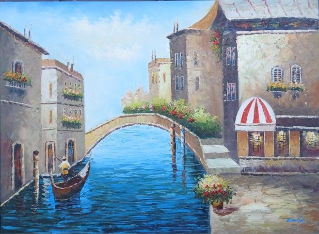 Large Gondola painting oil on canvas original hand painted. 36X 48