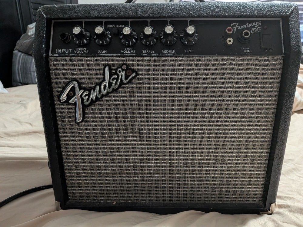Fender frontman 15G. Smaller amper but great sound. Everything works, just pretty dusty.