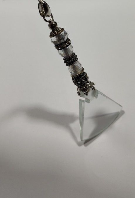 Magnifying Glass Fanshape With Czech Crystal &Silver Caps Handle Pendant Necklace 10x Strong Handmade