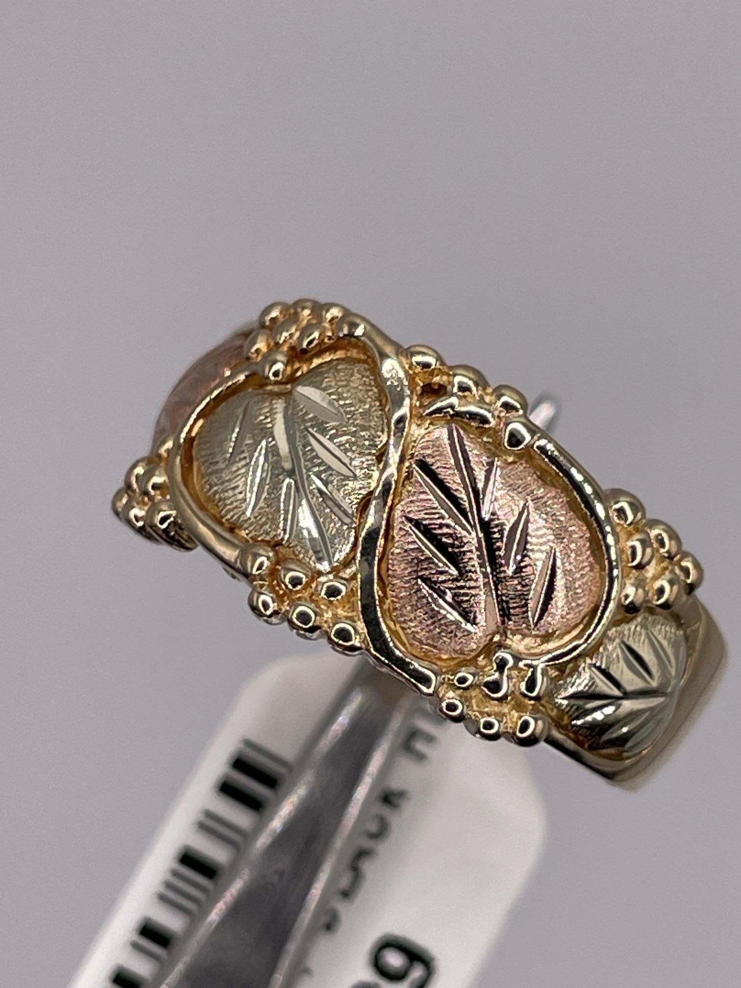 10k 3 Tone Black Hills Gold Ladies Ring Size 8