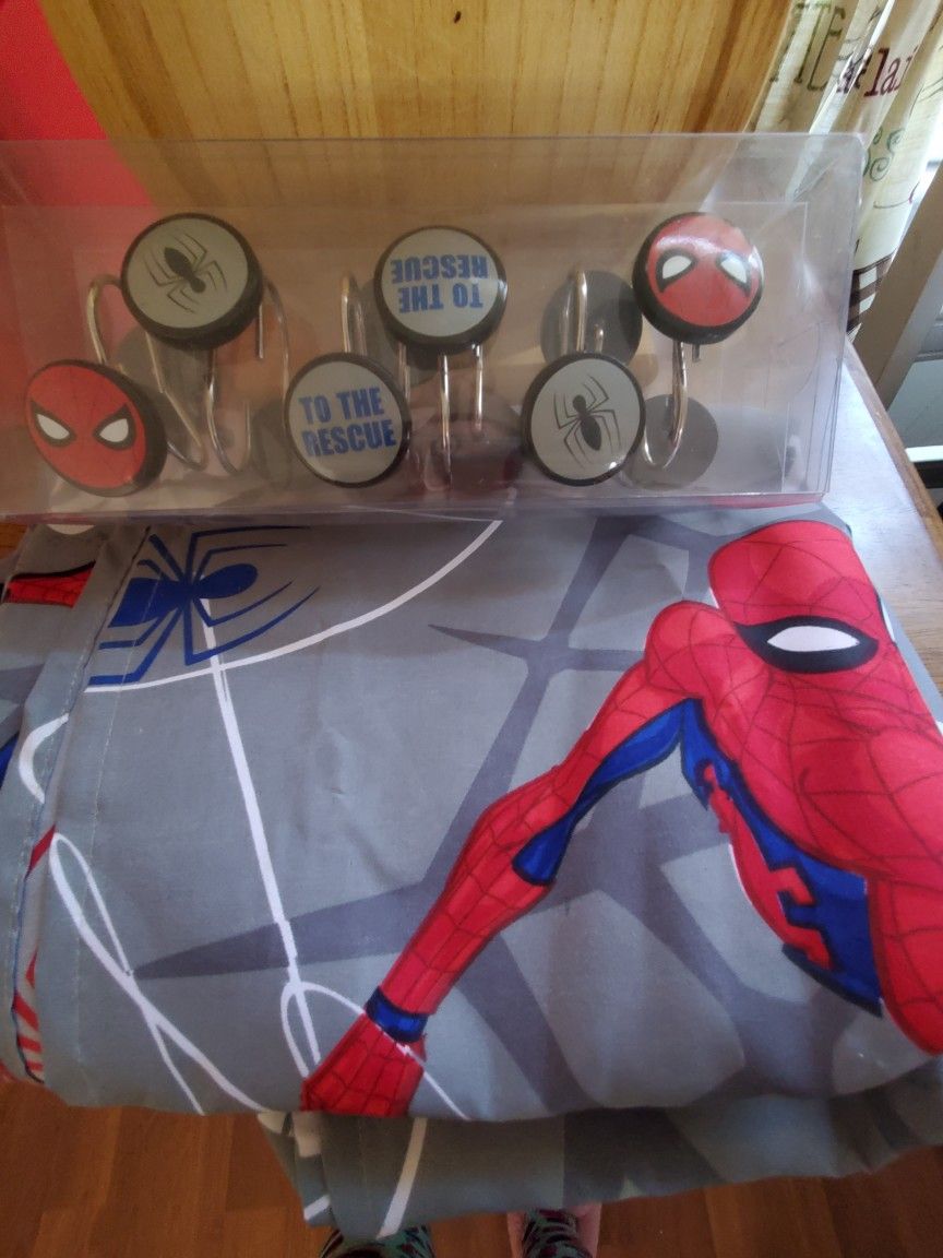 Brand New Spiderman Shower Curtain With 12 Matching Hooks