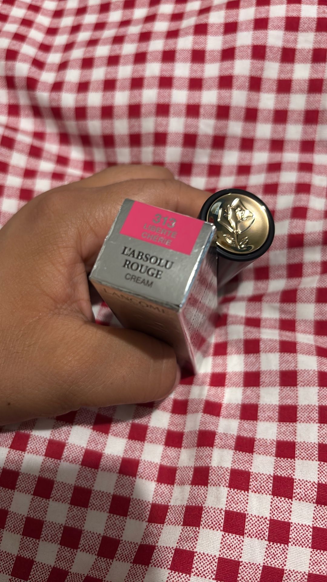 Lancôme's L'Absolu Rouge Cream Lipstick in shade 313 Liberté Chérie is a pink, creamy lipstick with a semi-matte finish that provides hydration and long-lasting color. The formula is enriched with rose balm and hyaluronic acid for comfort and is smudge-resistant. While the shade was a part of the L'Absolu Rouge collection, it is now considered discontinued Product details Brand: Lancôme Product Line: L'Absolu Rouge Cream Lipstick Shade: 313 Liberté Chérie Color: Pink Finish: Semi-matte, creamy Formula: Enriched with 30% moisturizing rose balm and hyaluronic acid for hydration Benefits: Hydrating and comfortable for up to 18 hours Smudge-resistant and non-bleeding Intensely covering color