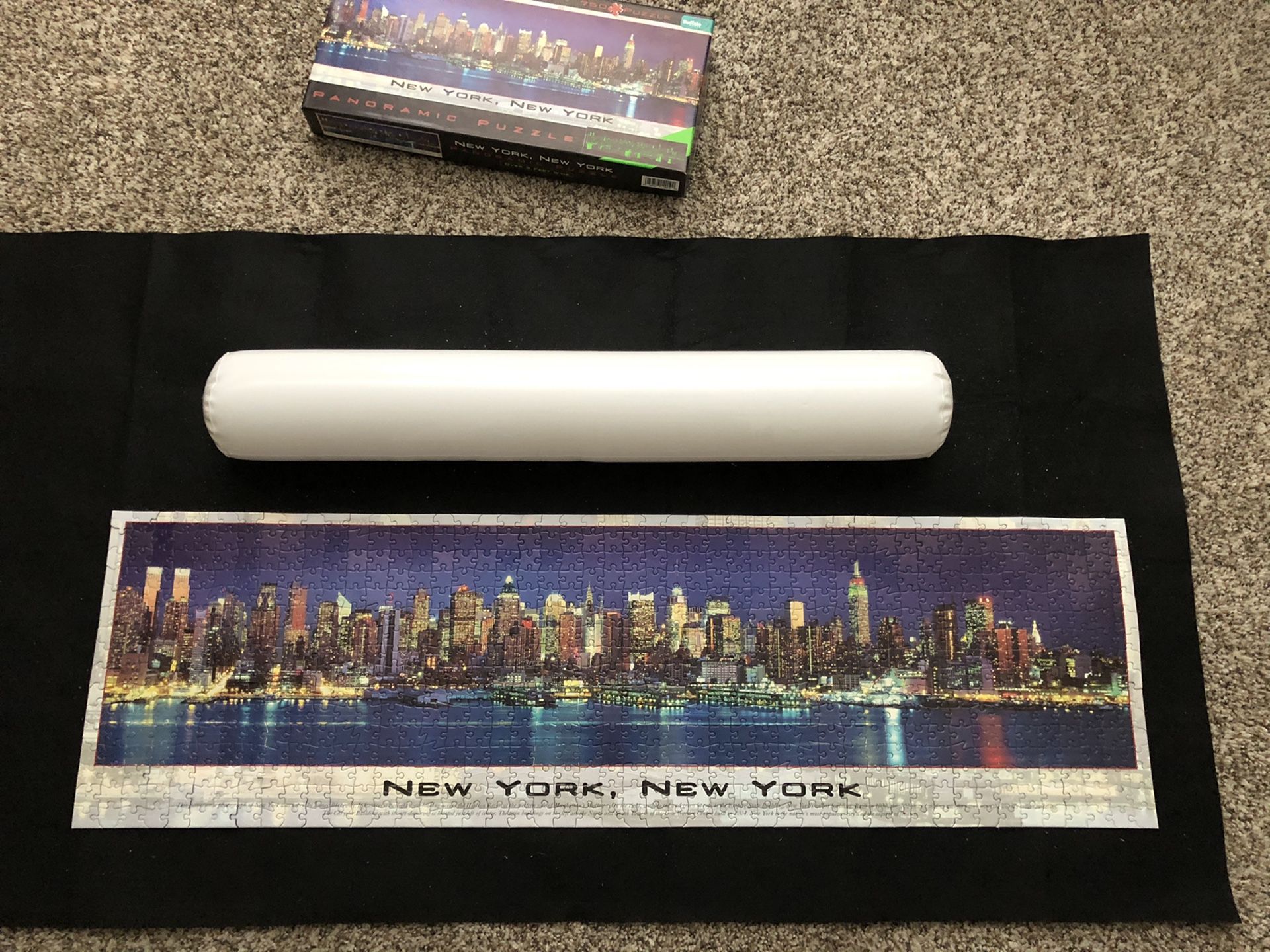 Felt mat and inflatable tube to roll and store jigsaw puzzles Mat and tube storage $20 With New York jigsaw puzzle $35