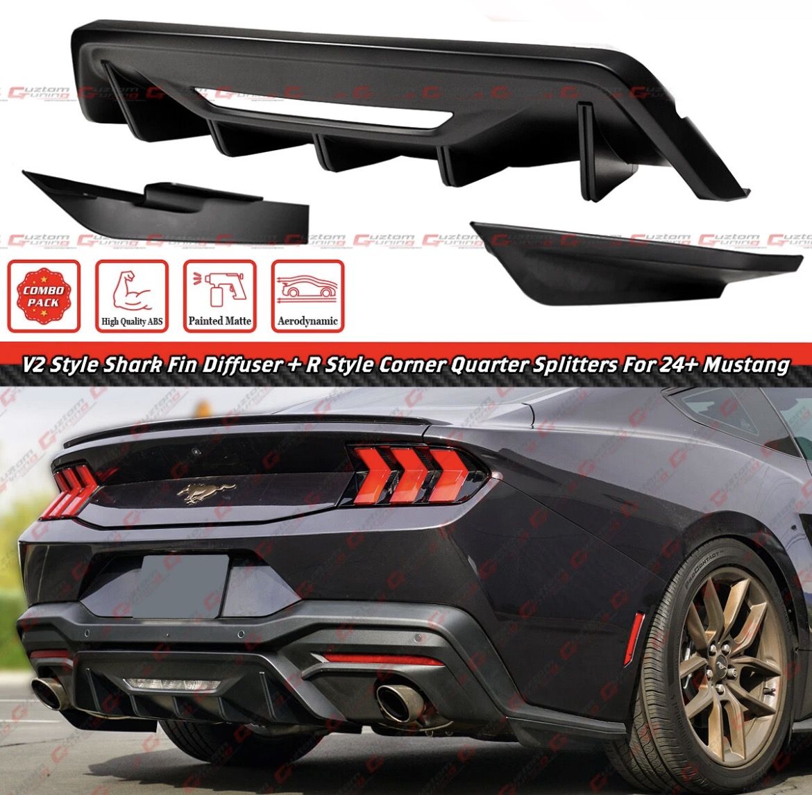24-25 Ford Mustang GT Matt Black Rear Diffuser + Corner Splitter