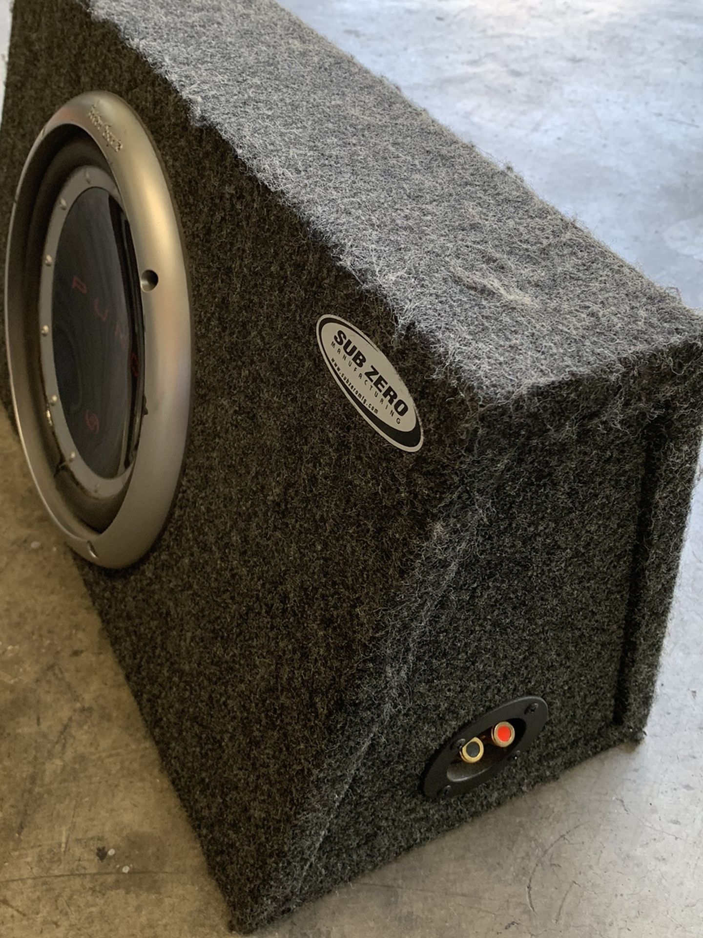 SubZero single 10” sub truck sealed box Comes with free Rockford Fosgate P1 Punch sub already installed Sub was slightly damaged, is now repaired and still slams hard Perfect for tight spaces or for more room in your trunk