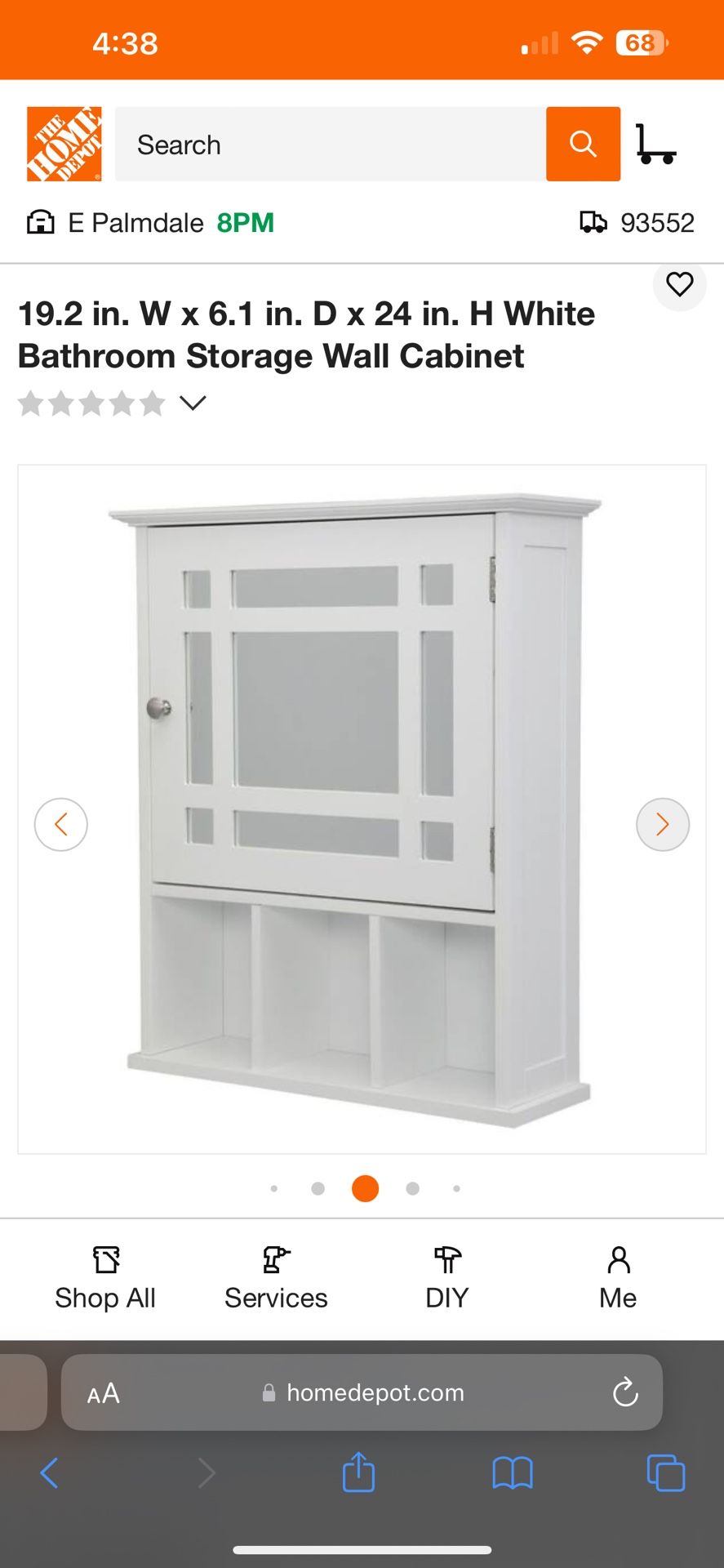This wall cabinet has sleek lines for a modern look. This cabinet features glass door with grid-work design. This unit offers plenty of storage space with one interior adjustable shelf making it easy to store items of different heights. 19.2 in. W x 6.1 in. D x 24 in. H 1 adjustable shelf within the cabinet, 3 classification compartments Shelf has 3 adjustable positions to fit items with different heights Loading capacity of 44 lbs. Simply attached to the wall to turn your empty wall into a practical space Prevents moisture: high-quality MDF with selected painting withstands the humidity of the bathroom Simple lines and elegant appearance in white is compatible with any decoration