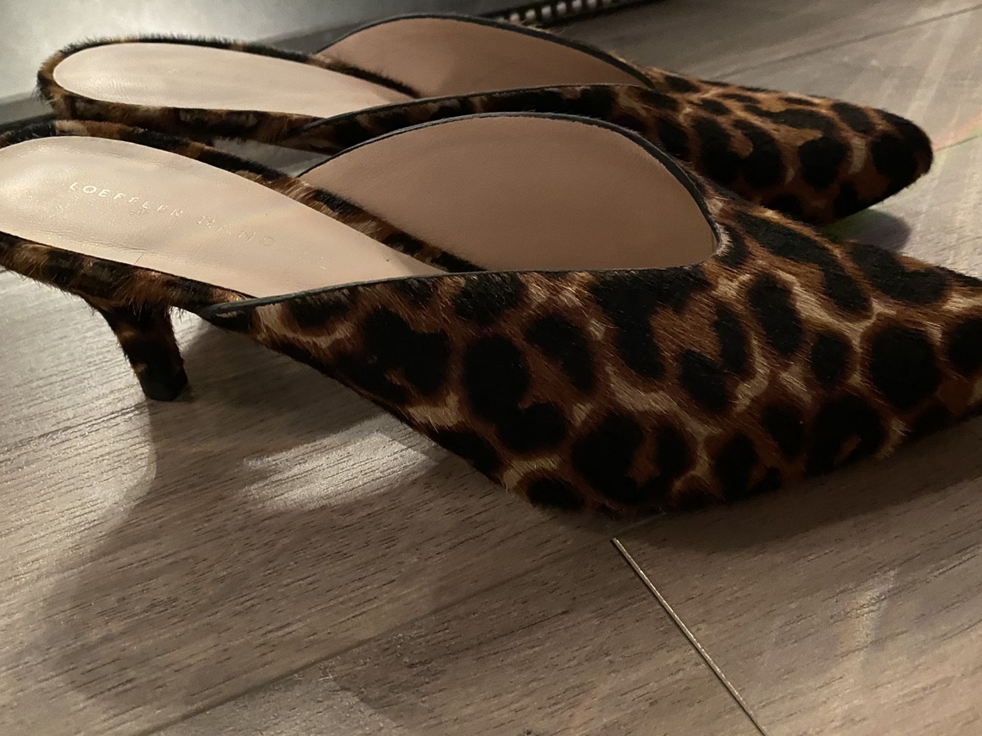 Original cost $395 LOEFFLER RANDALL Leopard Juno Calf-Hair Kitten Heel