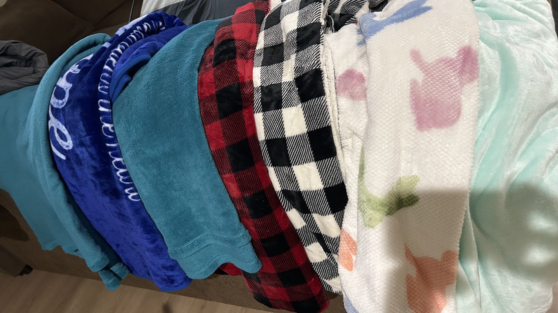 4 Huge bags of 2 Twin(pink), 1 Queen(grey) & 1 Black Fur Duvet(King). All sizes in Sheets and Varies sizes of Blankets. All for $35