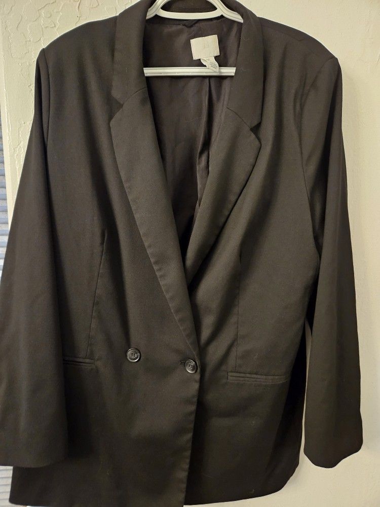 H&M Women's double-breasted blazer, black, size large. Excellent condition, no rips, tears, stains or otherwise. Freshly laundered. $20