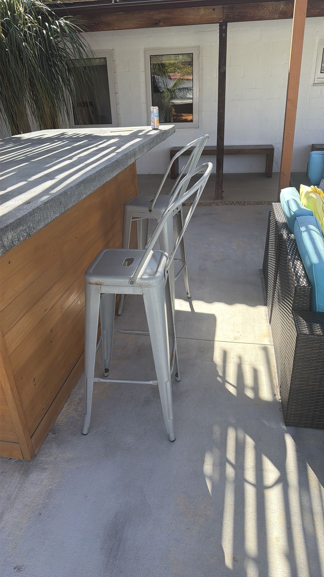2 metal barstools
