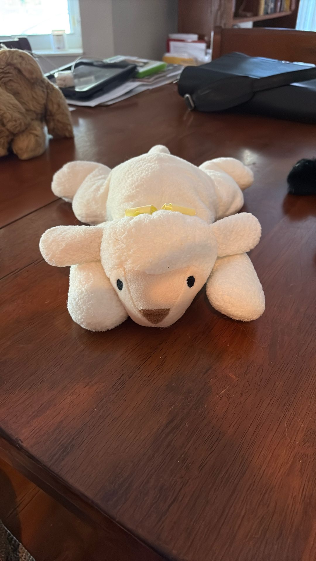 Ty beanie baby “Fleece” the lamb. White with beige face and yellow ribbon