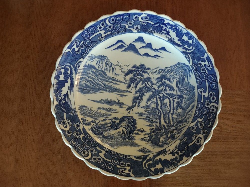 Vintage Blue and White Platter with Asiatic Landscape