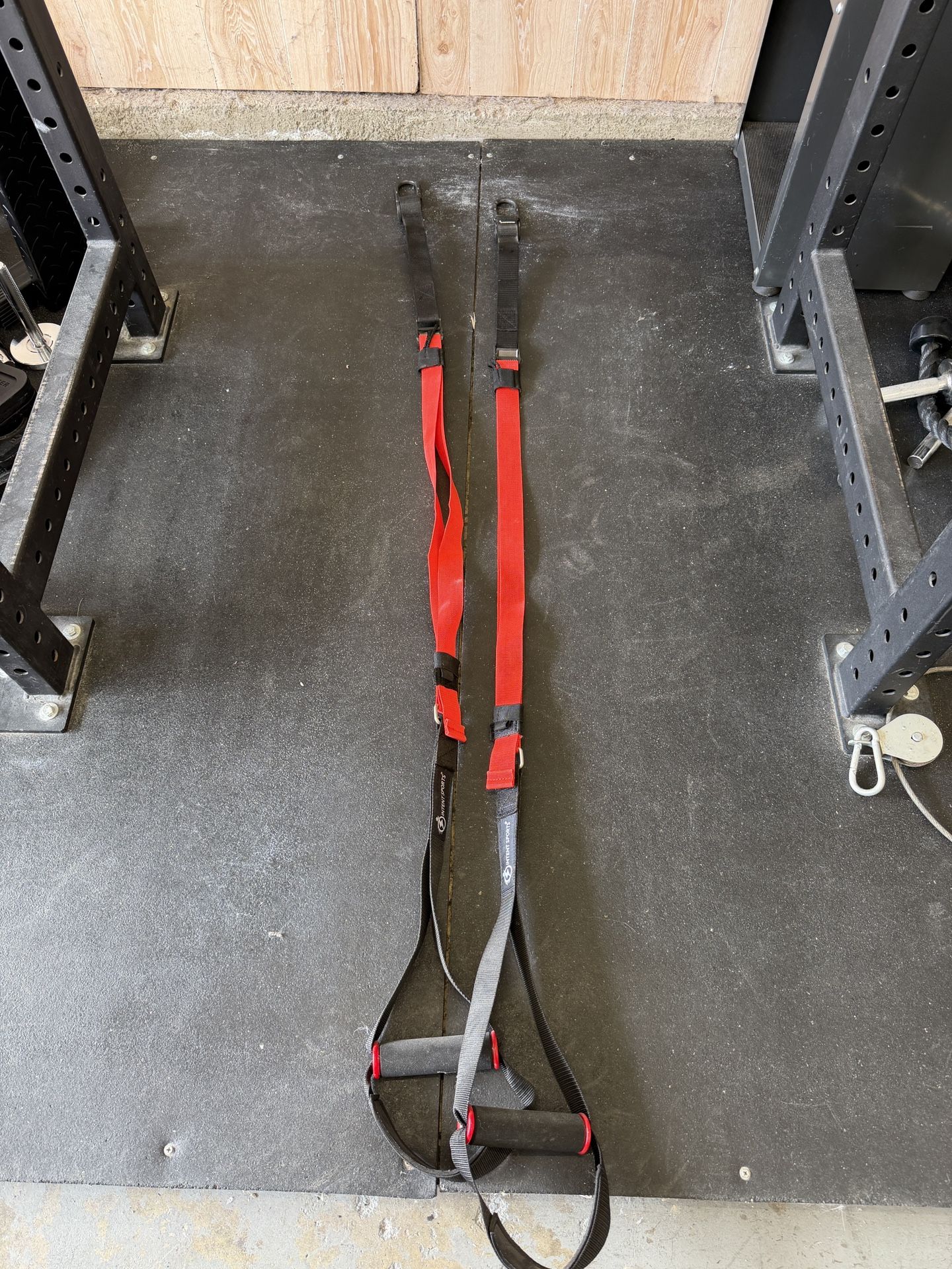 This can be attached to a rack or bar to help with pull-ups. You can also do a TRX-Style training by using the handles to do rows and an inverted pull-up.