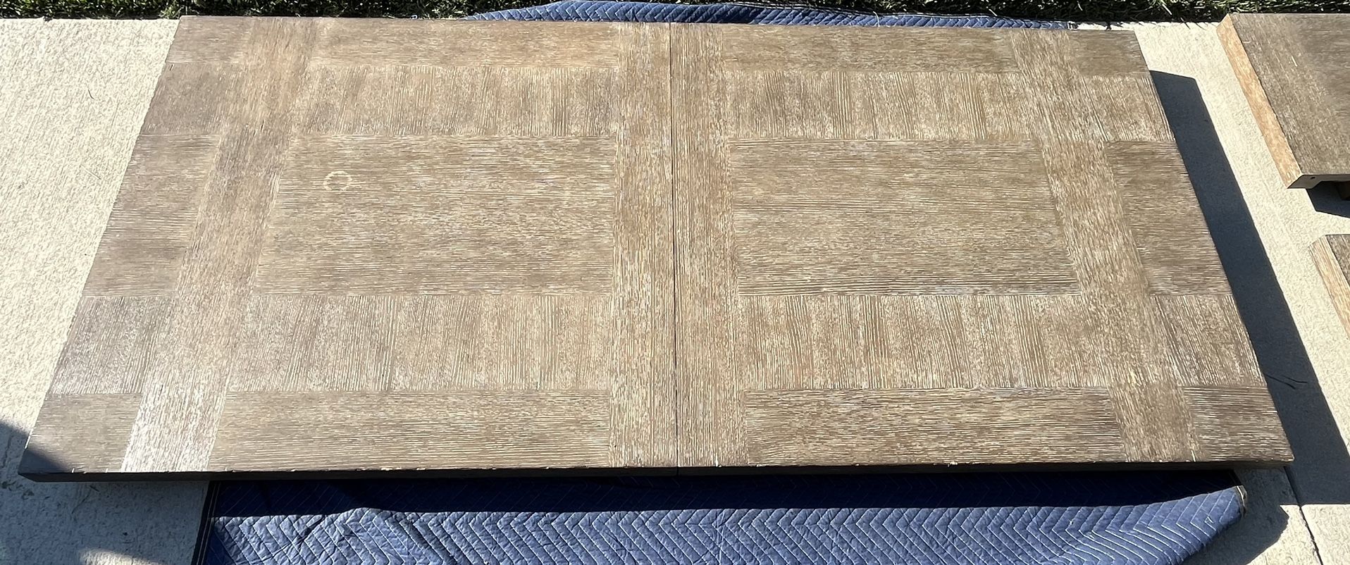 Measurements are shown in the photos. Includes 2 table leafs, each 20”. Does not include the bases, you can get them from Haverty’s. Very heavy. Delivery available. We accept; Apple Pay, Cash, Cash App, Venmo, Zelle.