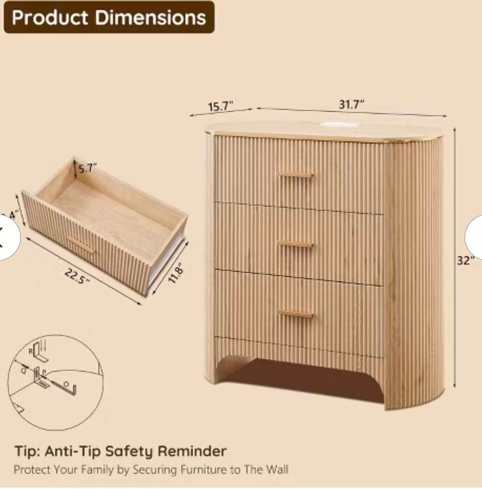 Fluted Nightstand with Charging Station, 31.7" Wide End Table with 3 Drawers,Dresser for Bedroom, Night Stand for Living Room, Natural Oak ❤️it is assembled from the box by my coworker and displayed in our showroom 🙏pay $98.00 + sale tax by cash or card in (final sale). ✌️Not Accept price negotiation through thIs OfferUp App ; The price is as marked ✌️Only Pick up —-Location : zip code 80231 or 80223 or 80241 depending on item ✌️Hour : from 10 am to 7 pm(Monday unavailable) ✌️Pick up only, No delivery , No shipping ✌️Please feel free to text if you have any question( will not respond back for negotiating price) ✌️ ALL furniture are new and not used at all. However, due to few careless or overweight handling during shipping, transport or assembly, few of them will have mild scratch or dint. So does some inventories still in the box. We try our best to photo those in pictures after assembling them. The price is adjusted based on those issue that we notice. ✌️ Item sold as the picture (it is assembled ) 🙏NO RETURN NO REFUND NO EXCHANGE