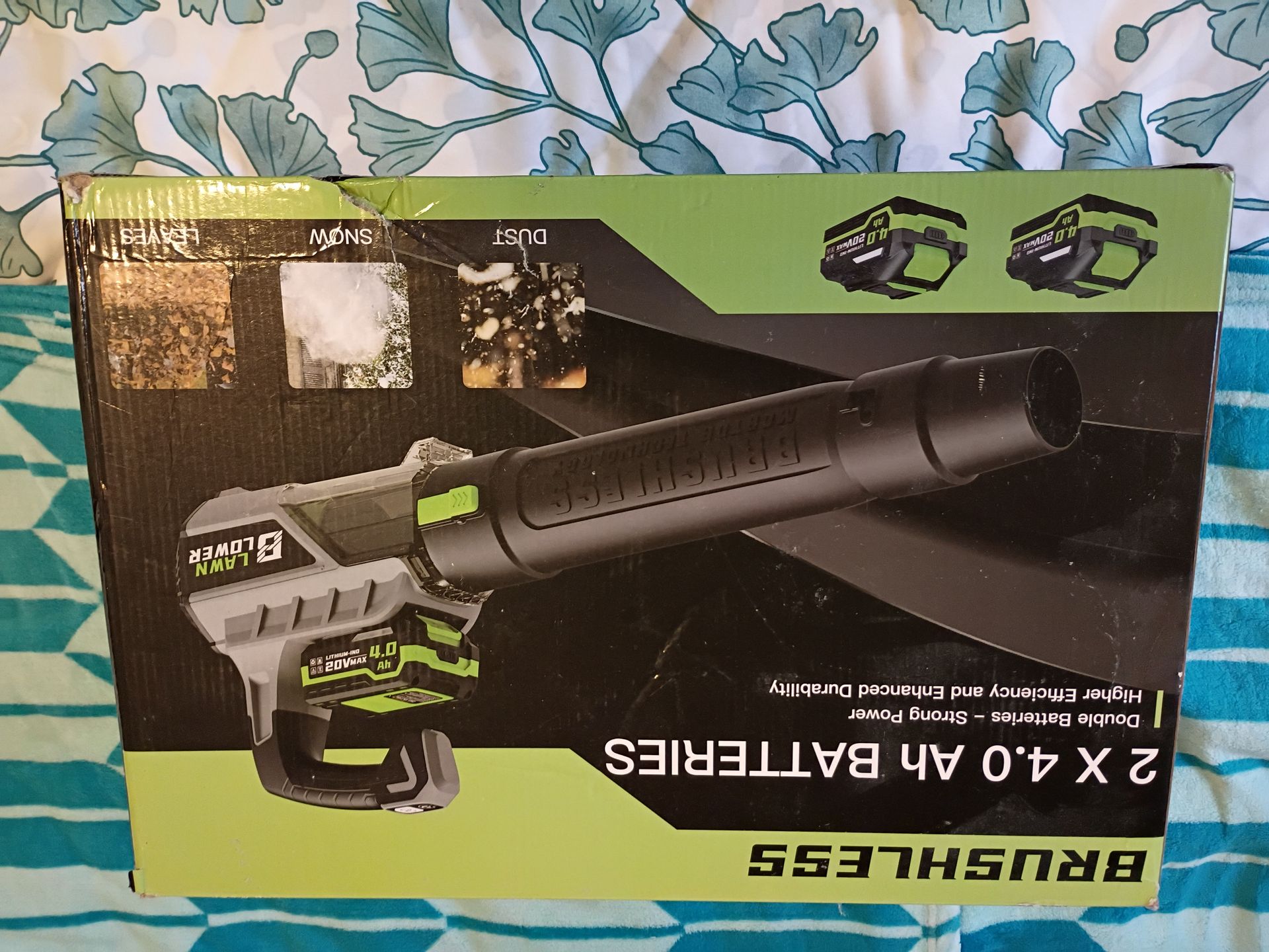 BRUSHLESS CORDLESS LEAF BLOWER WITH TWO BATTERIES AND A CHARGER LIKE NEW CONDITION IN THE BOX I PAID $70 ASKING $50 CASH.