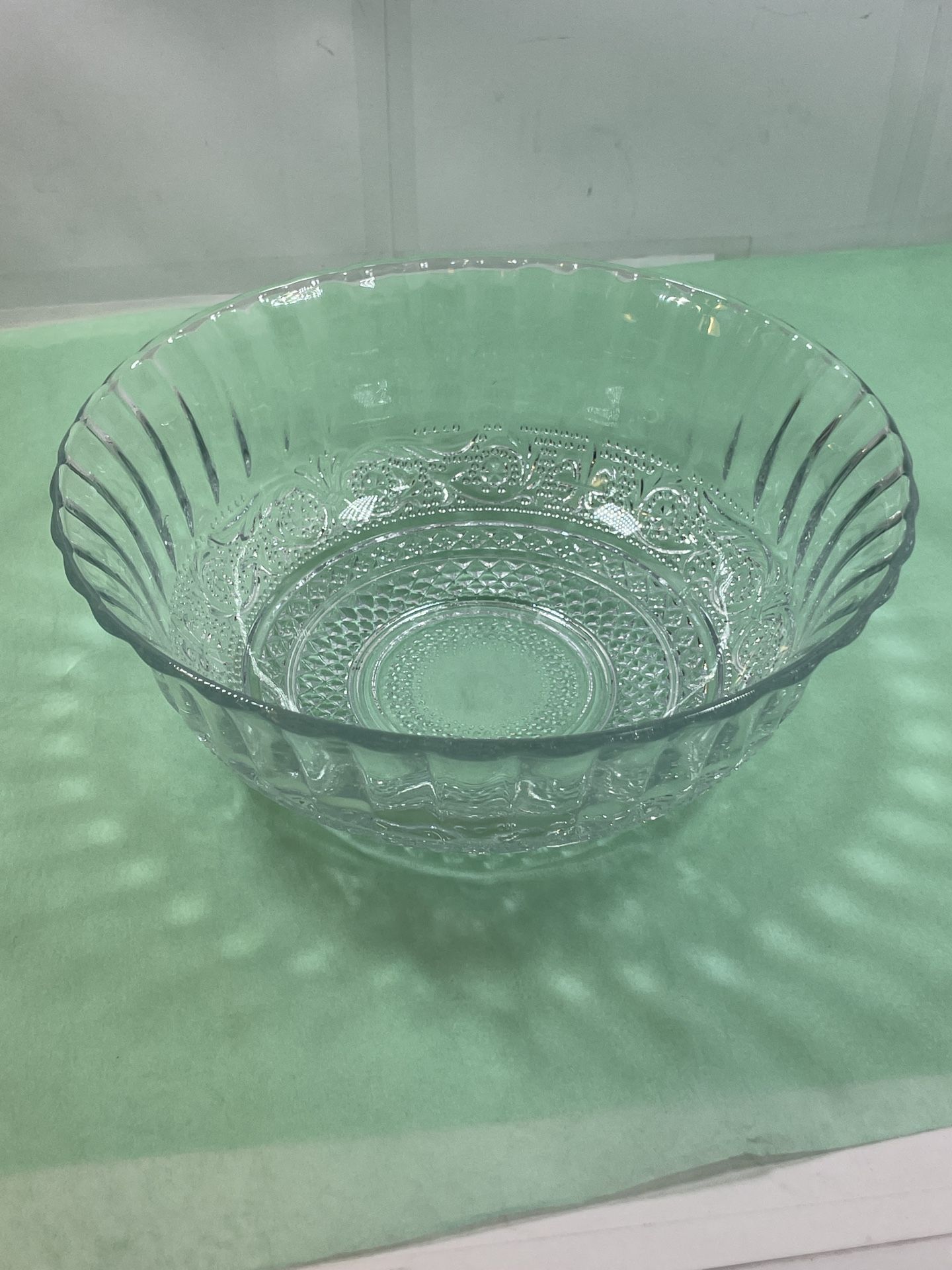 KIG Indonesia TRELLIS FLEUR DE LIS Sandwich Pressed Glass 7.5” Serving Bowl