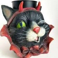 Cool Black Cat with Devil Horns Candleholder Centerpiece Item is in great condition and looks incredible on display! Comes with Original Glass Cylinder and Original Box! Total height 16.25 " inches tall. The cat part measures approx. 7.25" inches tall without the Glass Cylinder.. The glass cylinder is approx. 9" inches tall. Thanks for looking, check out other items on my page.