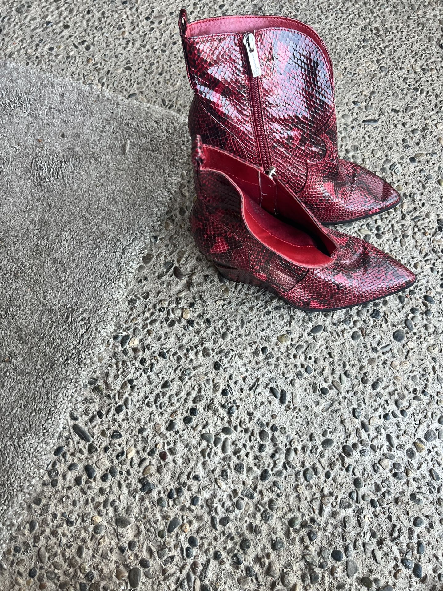 Women’s Ankle Booties Size 8 Good condition Snakeskin red Must sell