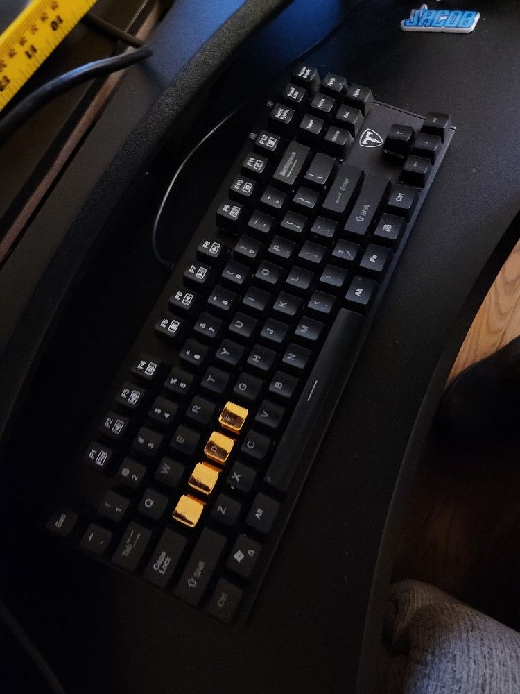 Mechanical keyboard Blue switches clicky sound, four custom gold key caps Usb