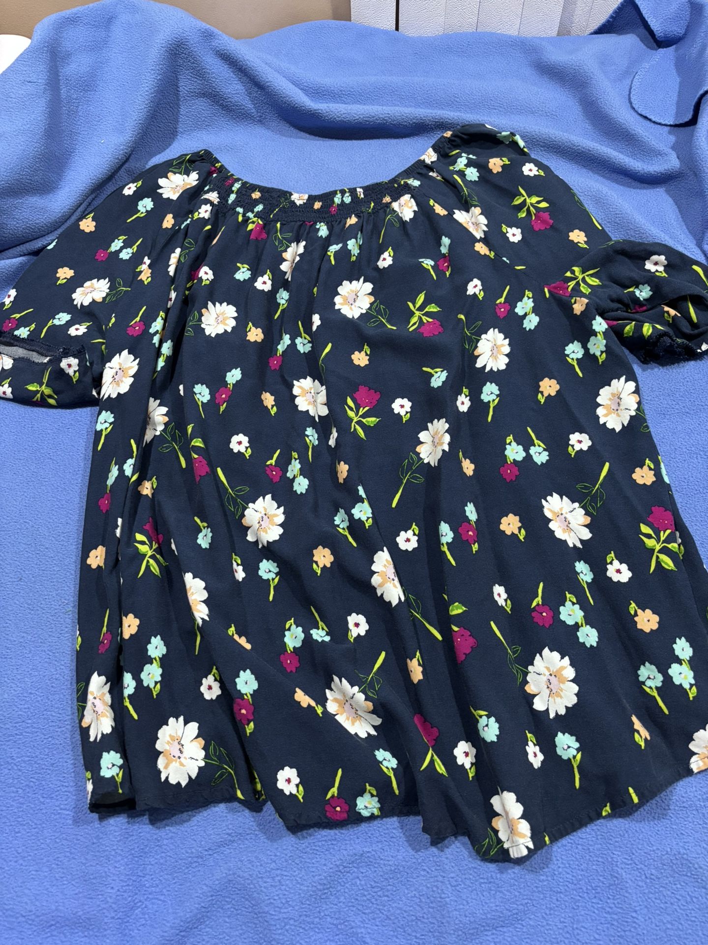 Cute top, elastic neckline Navy blue with colorful flowers. Size 2x
