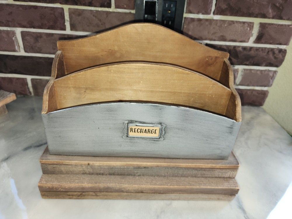 Phone Charging station has holes to bring cables through and phones to recharge. Works great to keep phones tidy. Pick up North Fontana 210/15 area