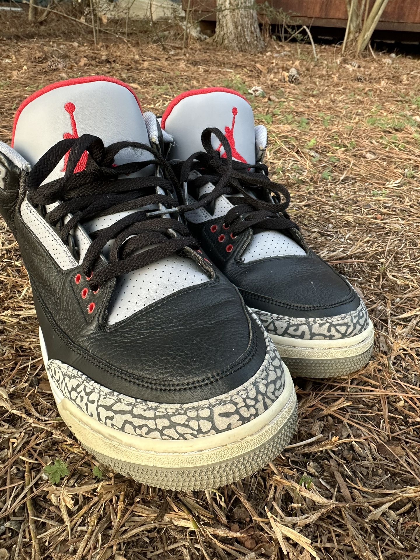 pair of Nike Air Jordan 3 Retro "Black Cement" sneakers. Size 13