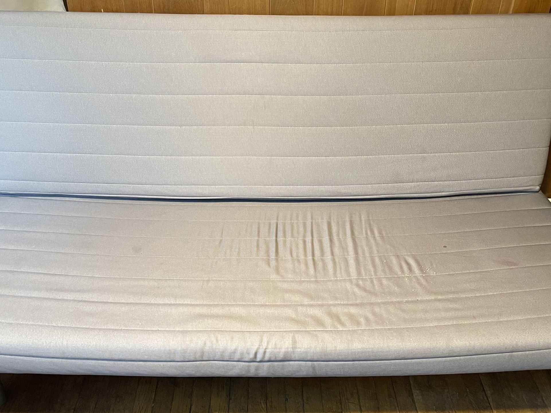 I’m selling due to moving. Nothing wrong except two very tiny hole on the cover. (You can use your own cover). It turns to a queen bed when it’s opened. It needs to be gone by 16th of July.
