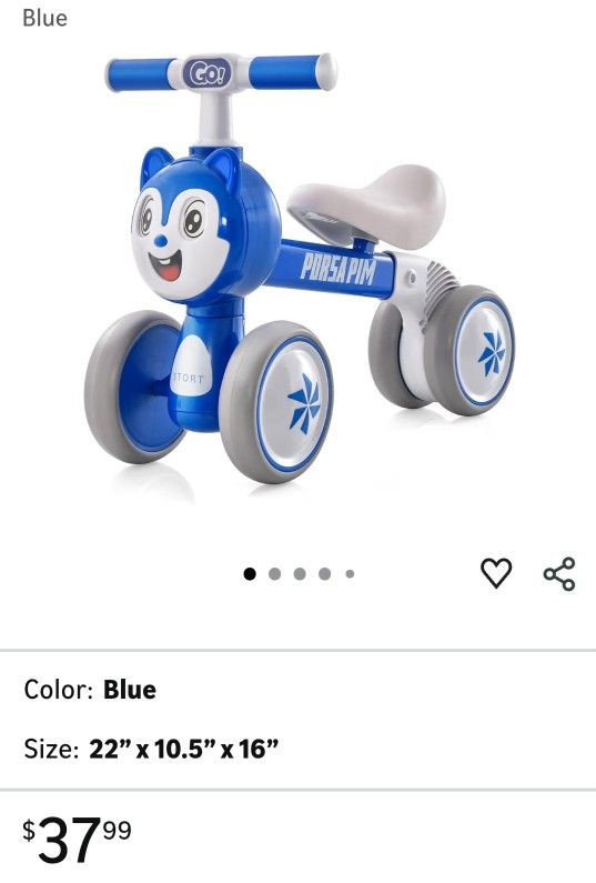 BABY JOY my first Balance Bike, No Pedal Lightweight Infant-toddler 4 Wheels Bicycle, 1st Birthday Gift, Indoor & Outdoor Animal for 10m-4yrs Old Boy and Girl, Blue, $20. Unisex Para infante y hasta 4años. Recogersolamente
