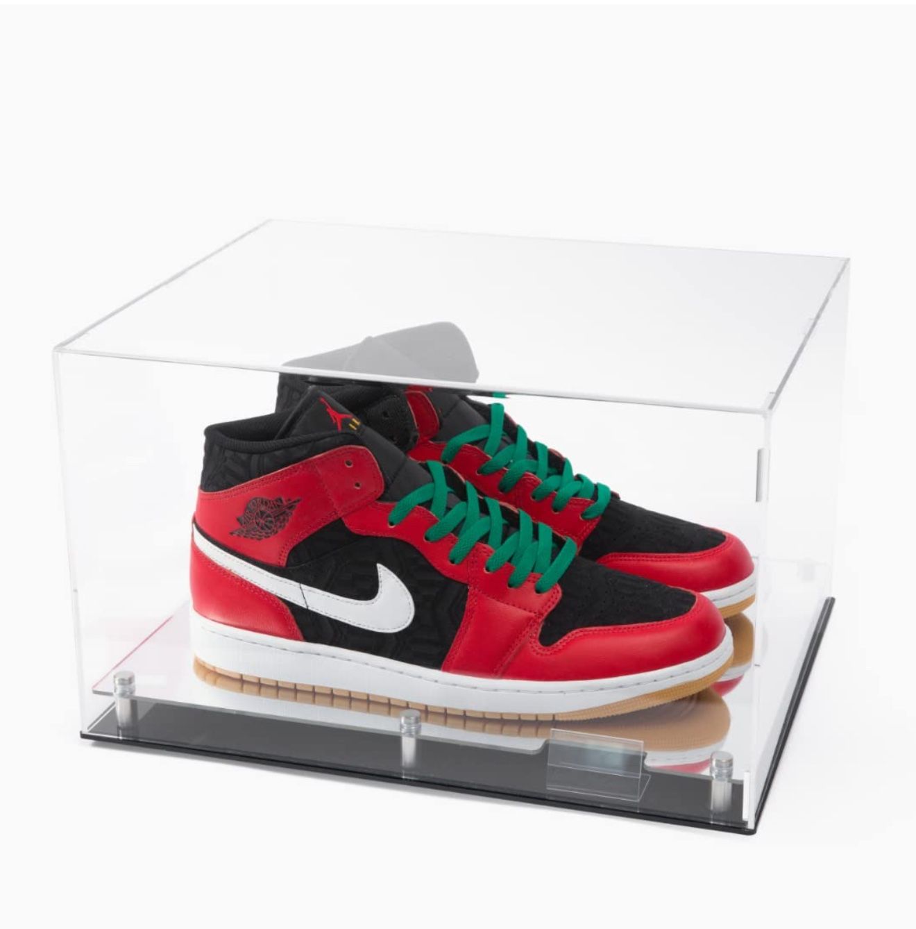 DECOMIL – Shoe Display Case, Acrylic Shoe Display Box, 2 Shoes Display, 16"x10"x12" Clear Display, Mirrored Floor Sports Memorabilia Case