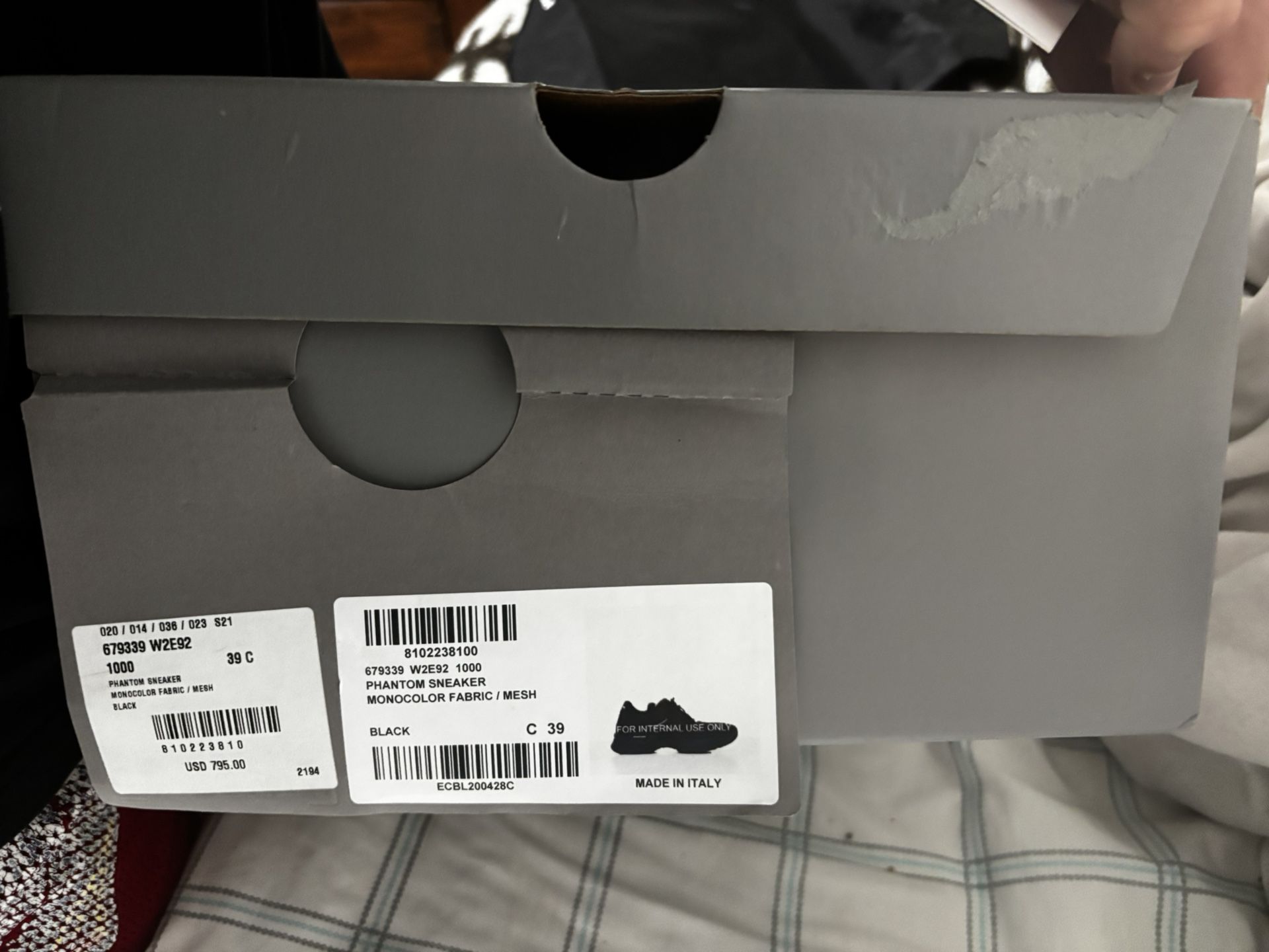 There pretty much new and come with box bag and I even have the original receipt showing there real only thing is bottom of the shoes dirty no tears nth get as is