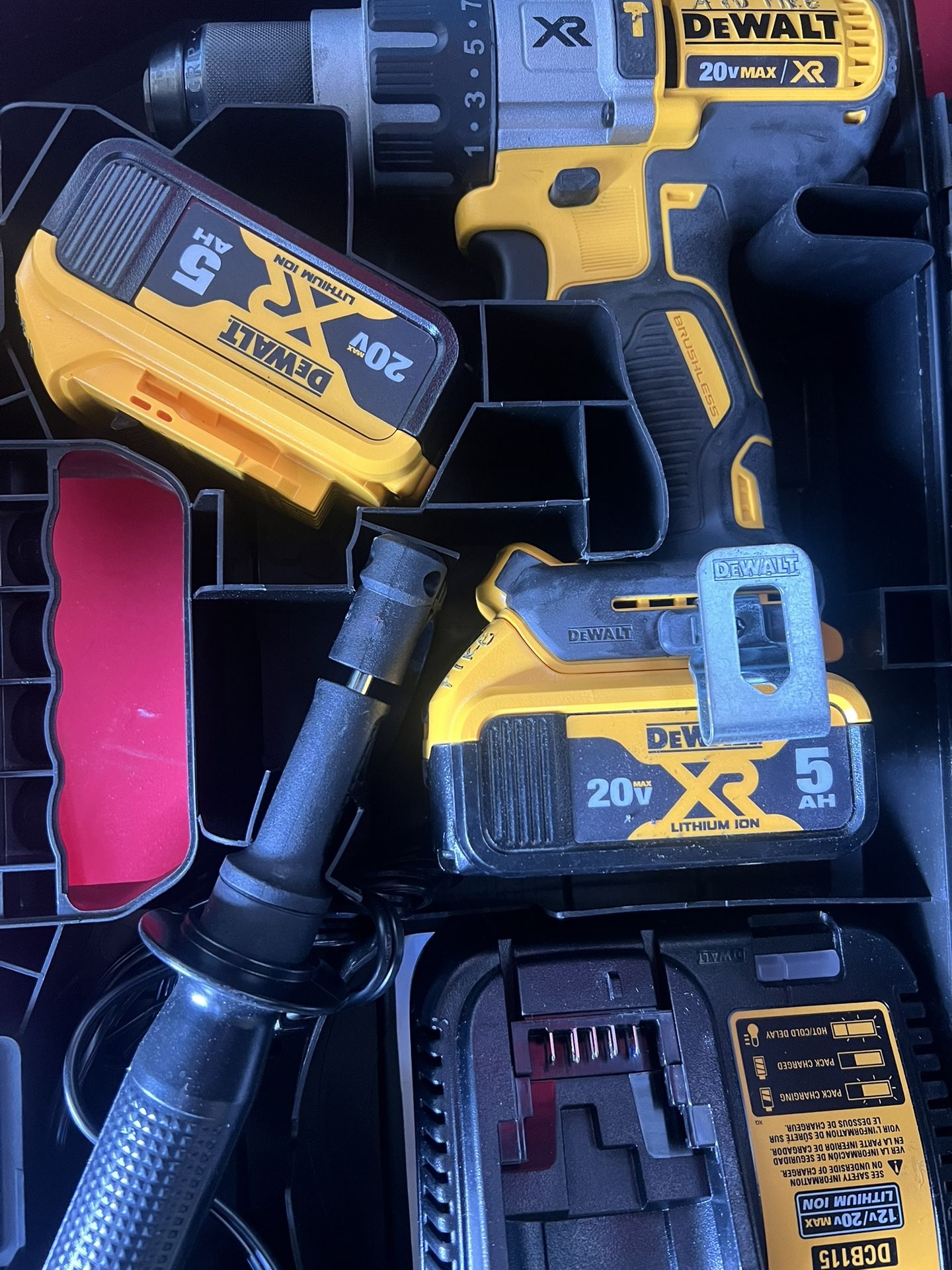 Dewalt 20 V hammer drill semi new with batteries and charger. See attached pictures. Ask any more information also have more items Milwaukee rotor hammer Milwaukee Chargers plus fast charger.