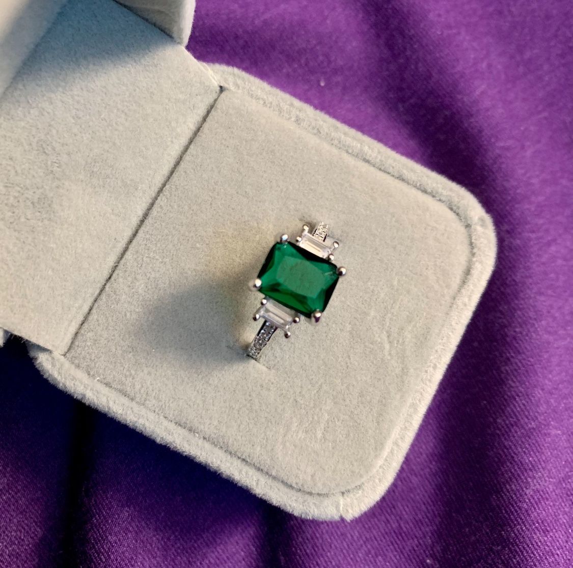 Size 10 Lab Created Emerald Ring In Sterling Silver 3 Stone Ring Engagement Birthday Anniversary