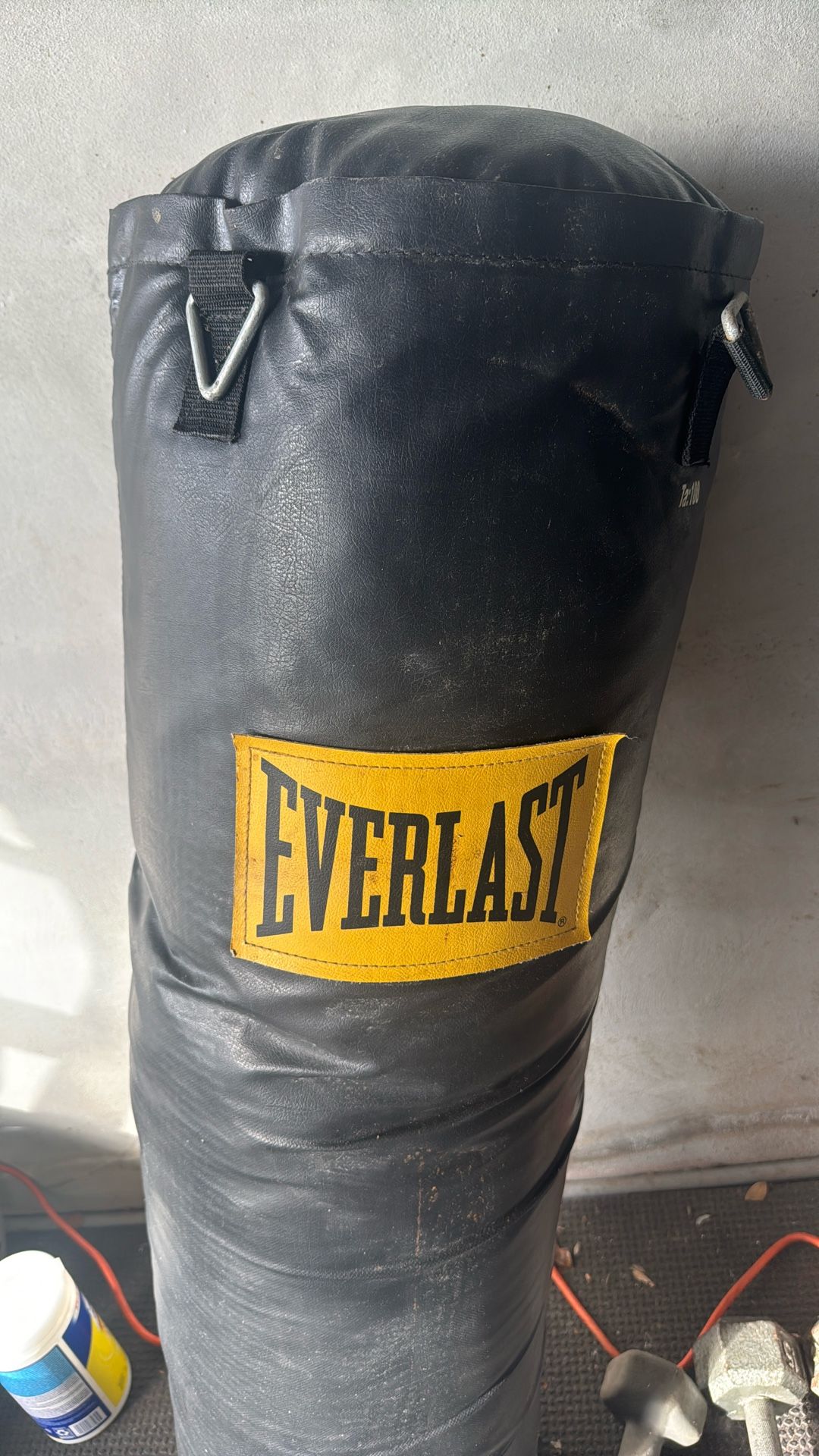 Good to very good condition EVERLAST large (100 lb) punching bag. Seldom used. All seams intact, no fraying. No tears. Comes with chain.