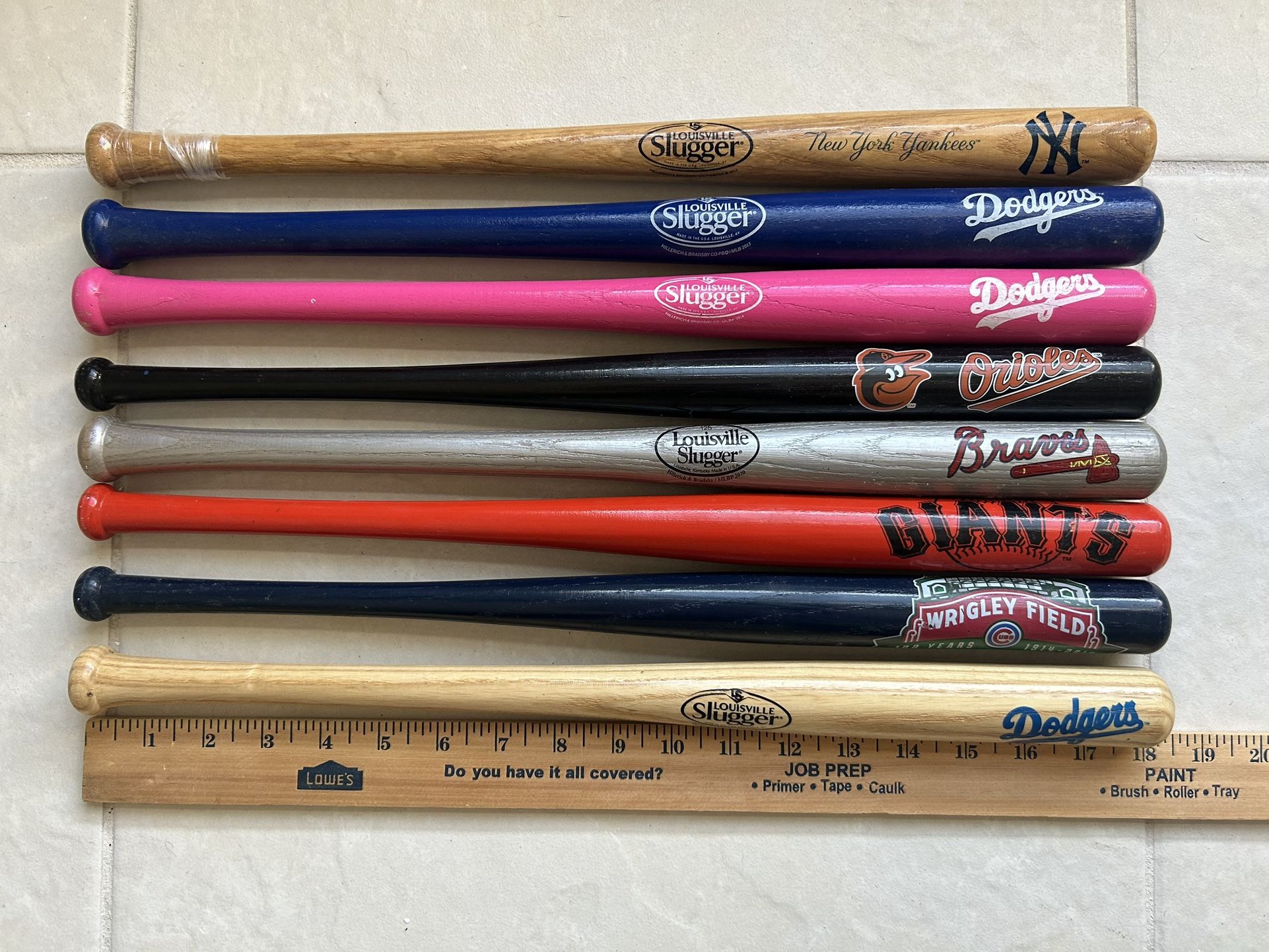 Good condition 18 inches $5 each $36 for set of 8 New York Yankees Los Angeles Dodgers blue Los Angeles Dodgers pink Los Angeles Dodgers tan Baltimore Orioles Atlanta Braves San Francisco Giants Wrigley Field Chicago Cubs Collectibles, keepsake, souvenir, gift, home decor, autographs, sports memorabilia No shipping Nonsmoking home Cash only ZIP Code, 34683 Palm Harbor