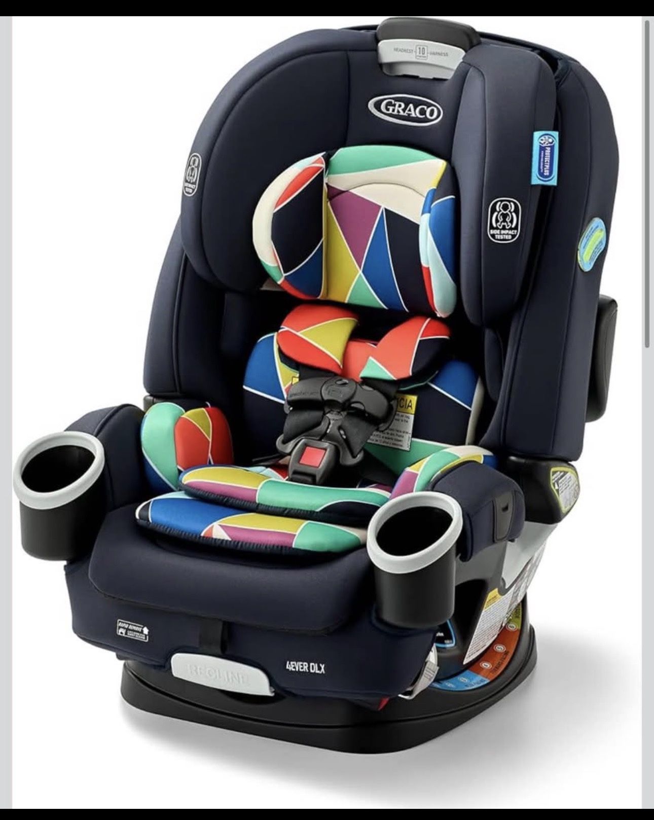 Graco 4Ever DLX 4-in-1 Car Seat, Infant to Toddler Car Seat, with 10 Years of Use, Rear-Facing, Forward-Facing, Highback and Backless Booster Seat, Geo Pop. It's new- still in the box. Normally $329 plus tax at retail price. Pick up at our store location at Cheyenne in Buffalo. Check some of our listing! We're selling different kids stuff. Thank you
