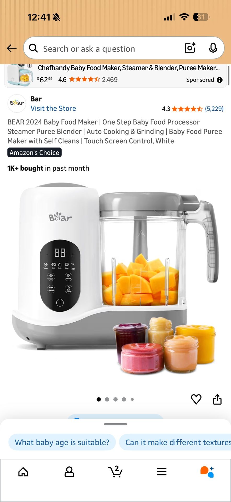 Brand new BEAR 2024 Baby Food Maker | One Step Baby Food Processor Steamer Puree Blender | Auto Cooking & Grinding | Baby Food Puree Maker with Self Cleans | Touch Screen Control, White