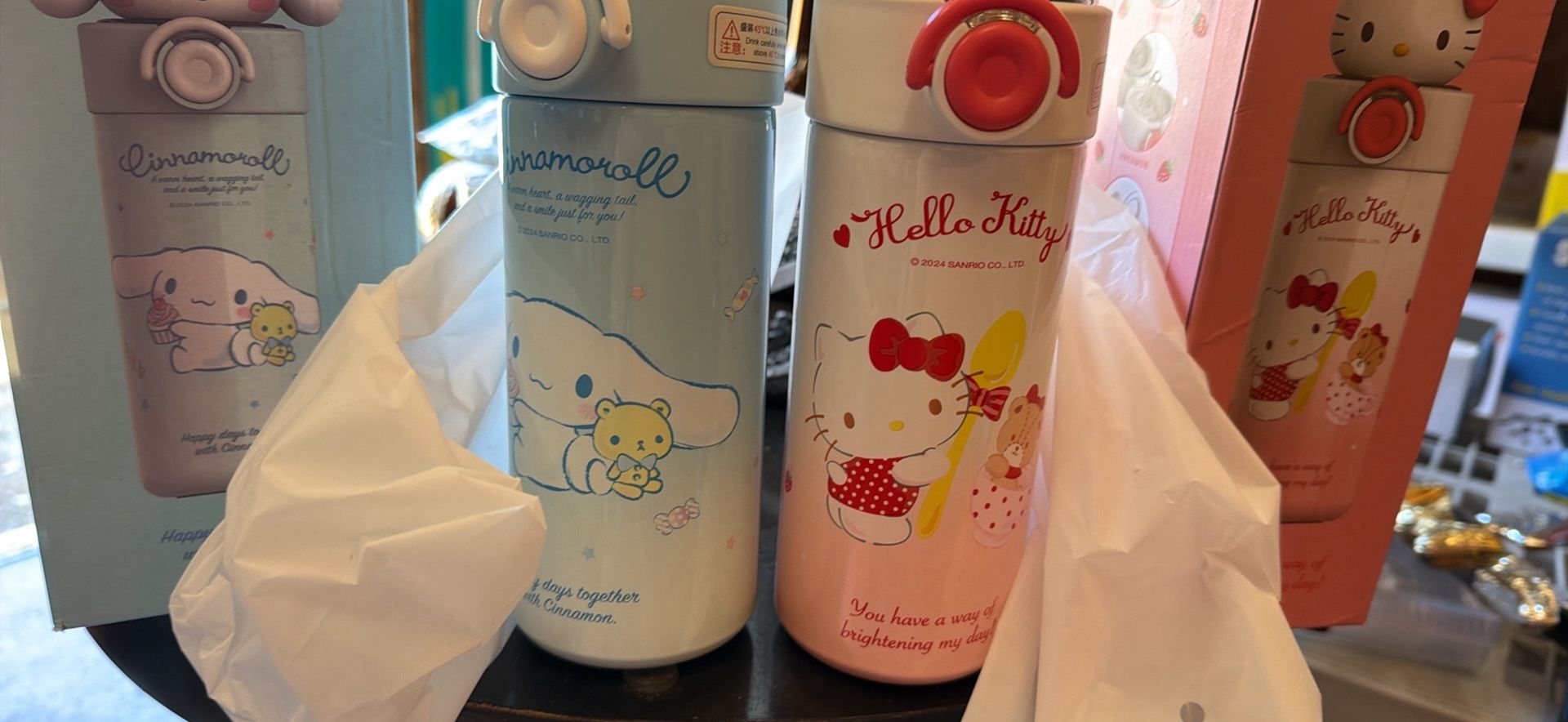 Cinnamon roll and hello Kitty drinking tumblers both for $30