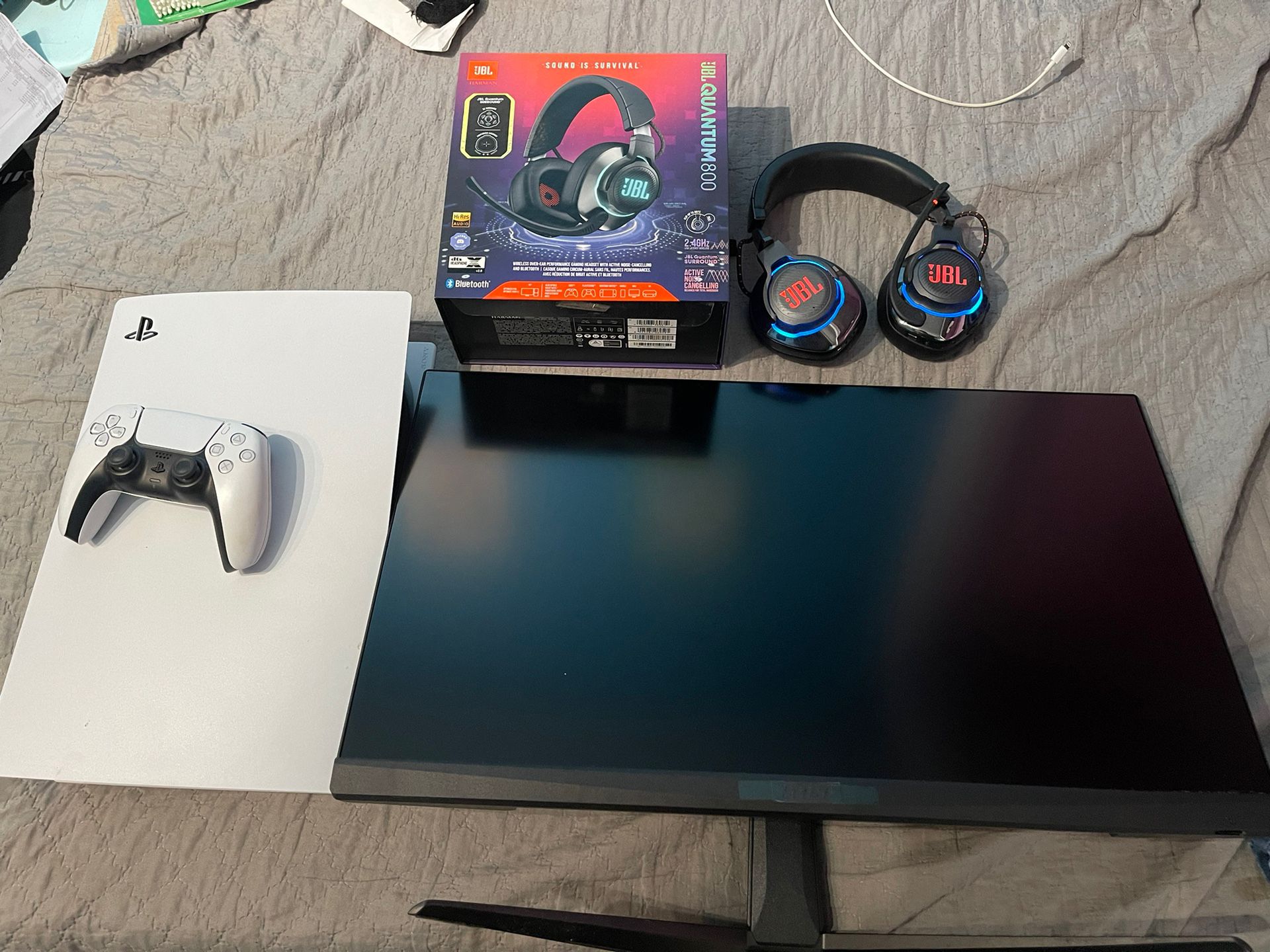 I am selling a digital playstation 5, msi 27” monitor, JBL 800 QUANTUM headphones. The play hasn't been used much, the monitor is new, I never used it, I just tried it, but I lost the box, I'm selling them because I don't use them, but everything works very well. free play5 camera