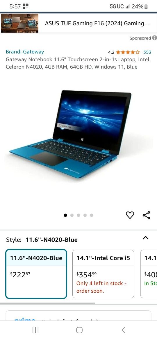 Gateway 11 Inch Touchscreen Laptop