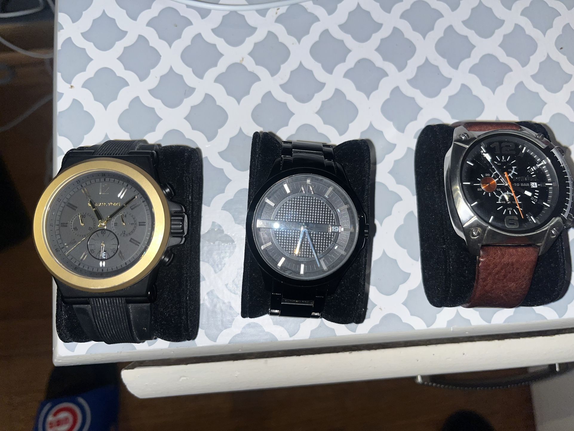 Leather strap Diesel $60 Gold ring Michael kors $40 Black Armani $50 $150 for all OBO
