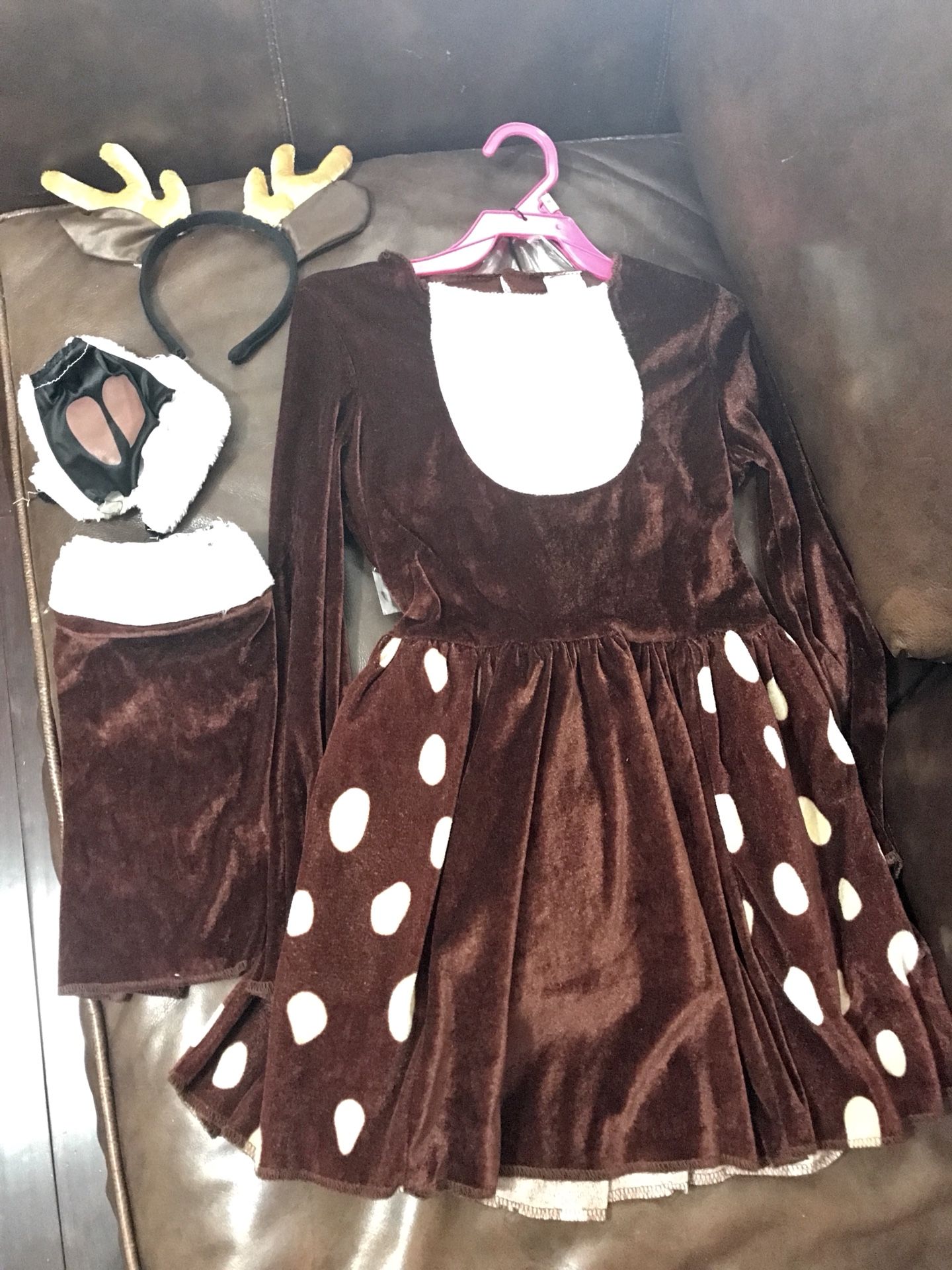 Doe A Dear costume. Detachable tail, headband, fingerless gloves, and leg warmers. Size M 8-10