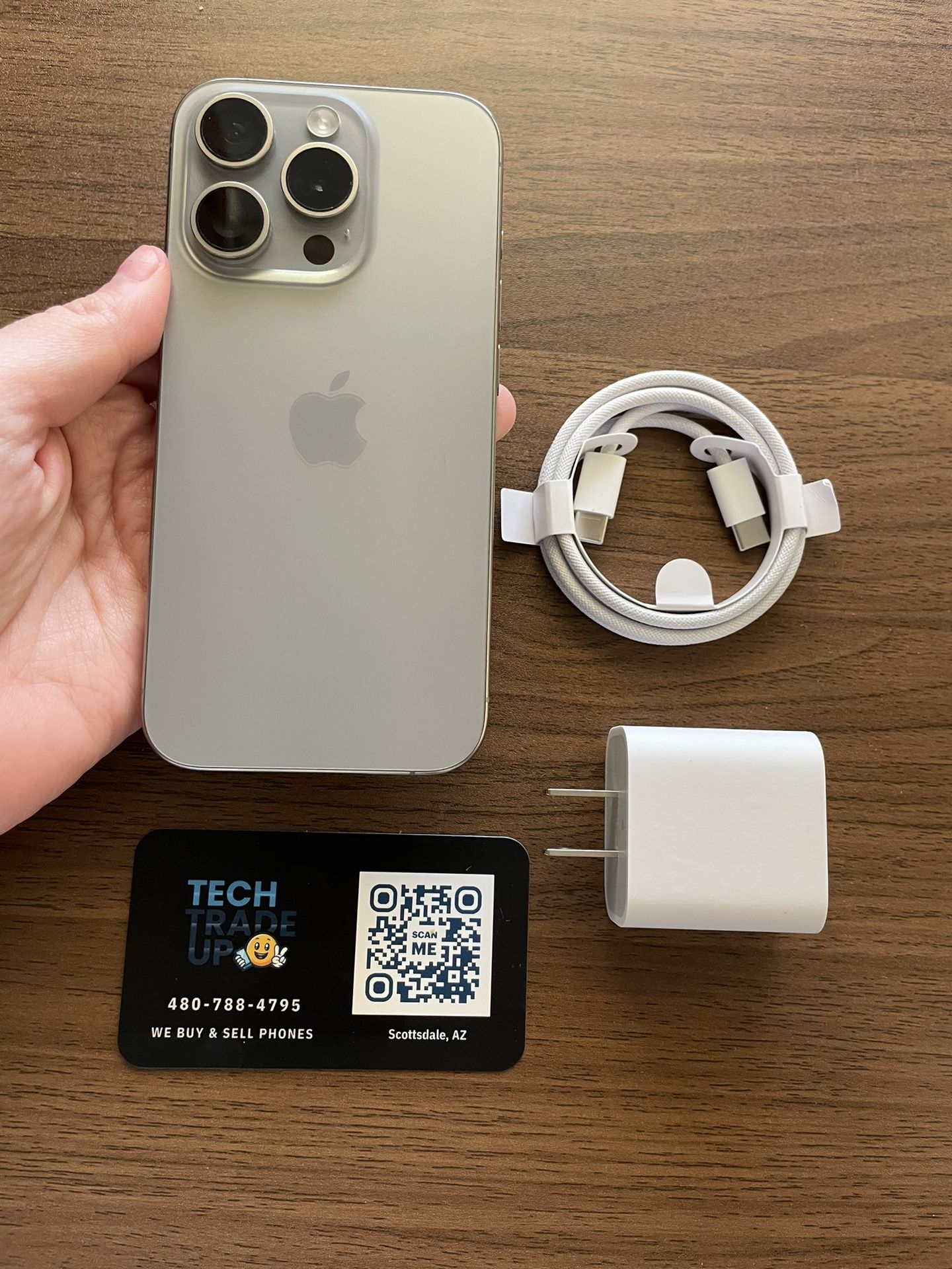iPhone 15 Pro 256GB Unlocked Gray Color Condition 7/10 Battery life 86% (minor scratch and small crack) 15-day warranty All original parts 100% functional Financing options available Includes charging cable, charger, case, and screen protector (if in stock) Student discount ($10) *Best price for cash* Zelle, Cash App, Venmo, Apple Pay accepted Card payments accepted through Square (taxes included, ID required matching the card). Includes: Premium cases available for $20 Kits available including a clear case, two screen protectors, and camera lens covers for $25 Apple fast charger brick available for $10