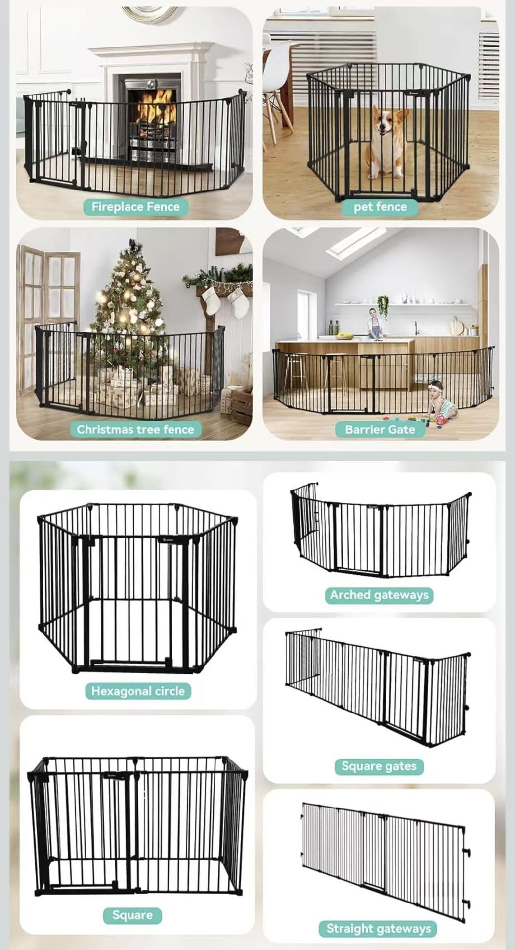 150" Extra Wide Baby Gate with Door, Dog Gates for The House Doorways Fireplace, Auto Close Baby Fence Play Area, Walk Through Pet Gate, Hardware Mounted, 6-Panels (30" Tall, Black)$50