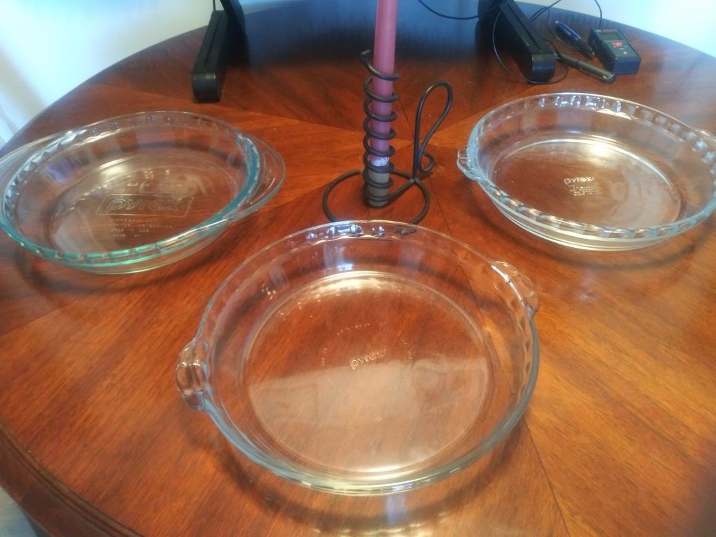 Clear glass with handles Decorative edges 3 available at 15.00 each. Because of the weight Offer Up does not pay for what the PO charges: Option is Priority Mail - approx $22 which includes insurance. OR regular mail $30 plus $5-10 for insurance. So you can send Offer Up the $13 but you will have to send the balance to me so I can ship it. Another option is for me to send it separately in 3 different transactions. I then have to see how much each one would cost to ship which Offer Up should cover with the $13 they are asking.
