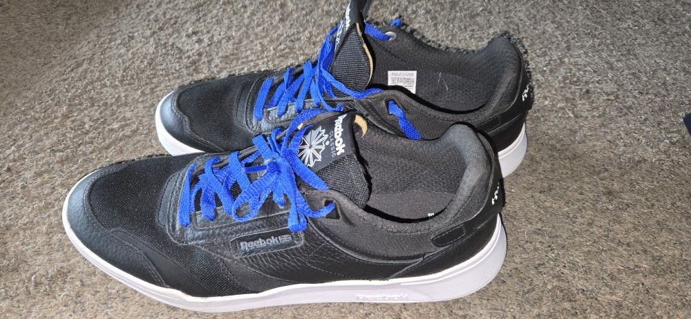 New, no box. Reebok Club C Legacy sneakers in a black colorway. This model features a black upper with a white midsole blue laces.